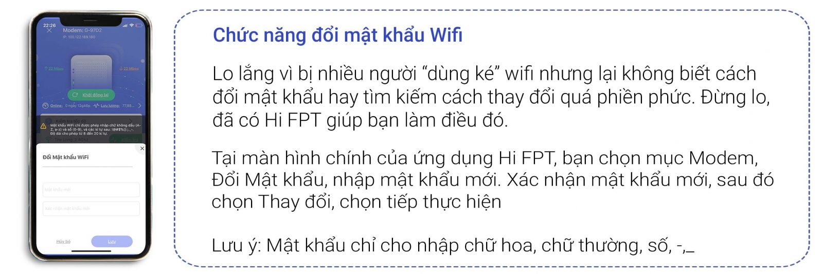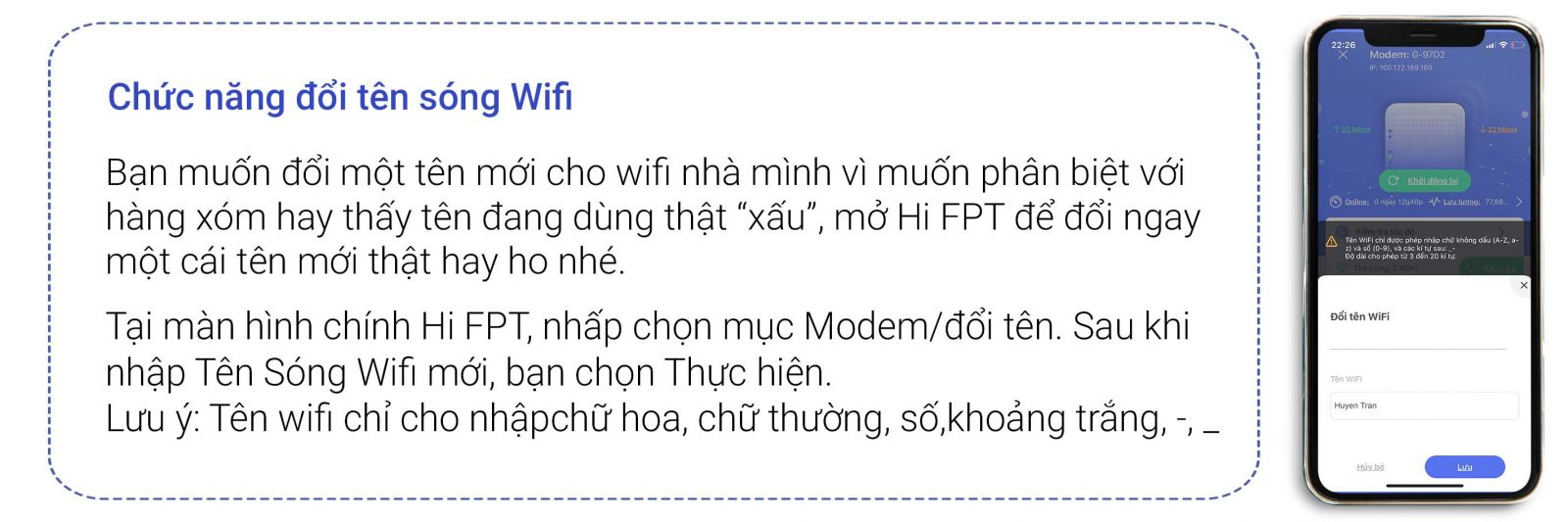 Thay đổi mật khẩu Wifi, khởi động lại Modem trong nhà giờ đây đã không còn là việc “bất khả thi” đối với hội “mù công nghệ” khi sử dụng ứng dụng Hi FPT.
